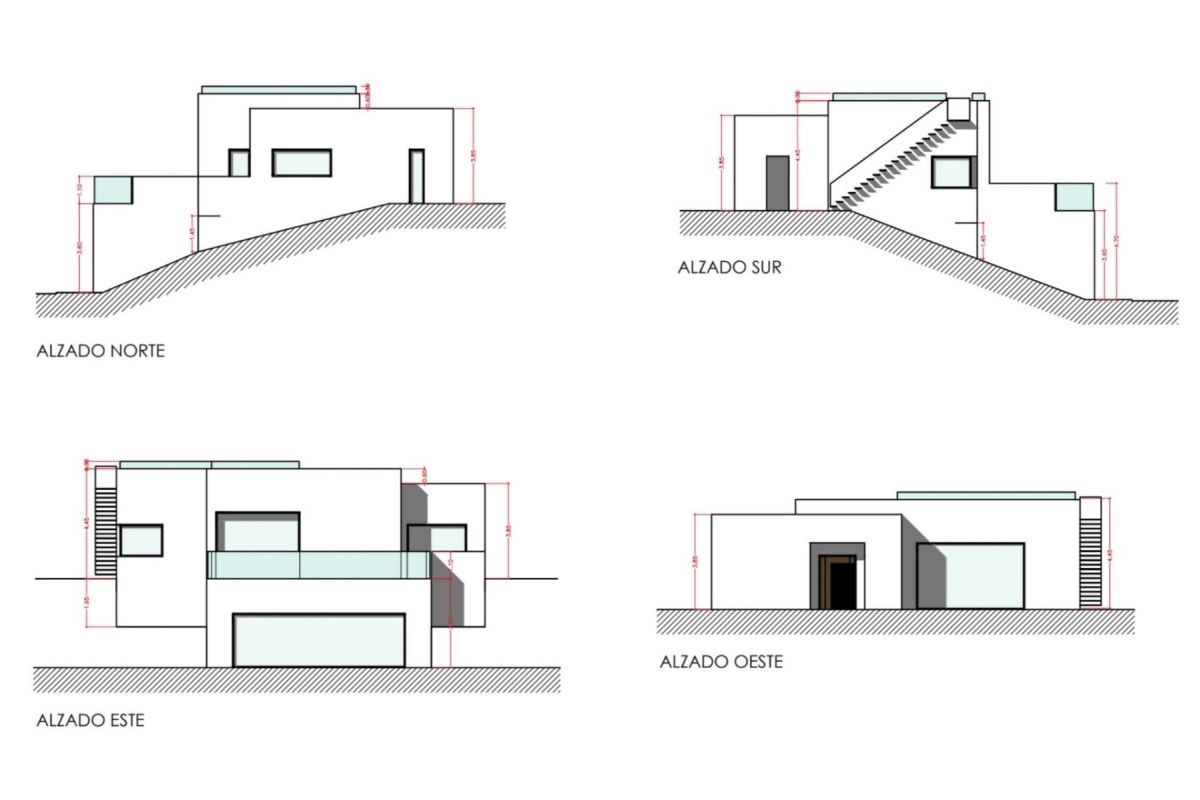 Vily se 3 ložnicemi a 2 koupelnami na pozemcích od 700 do 960 m2.