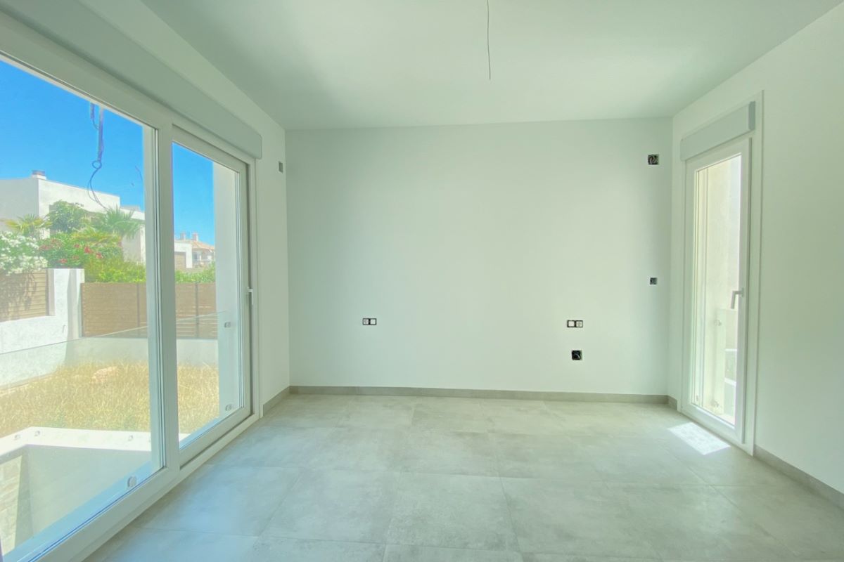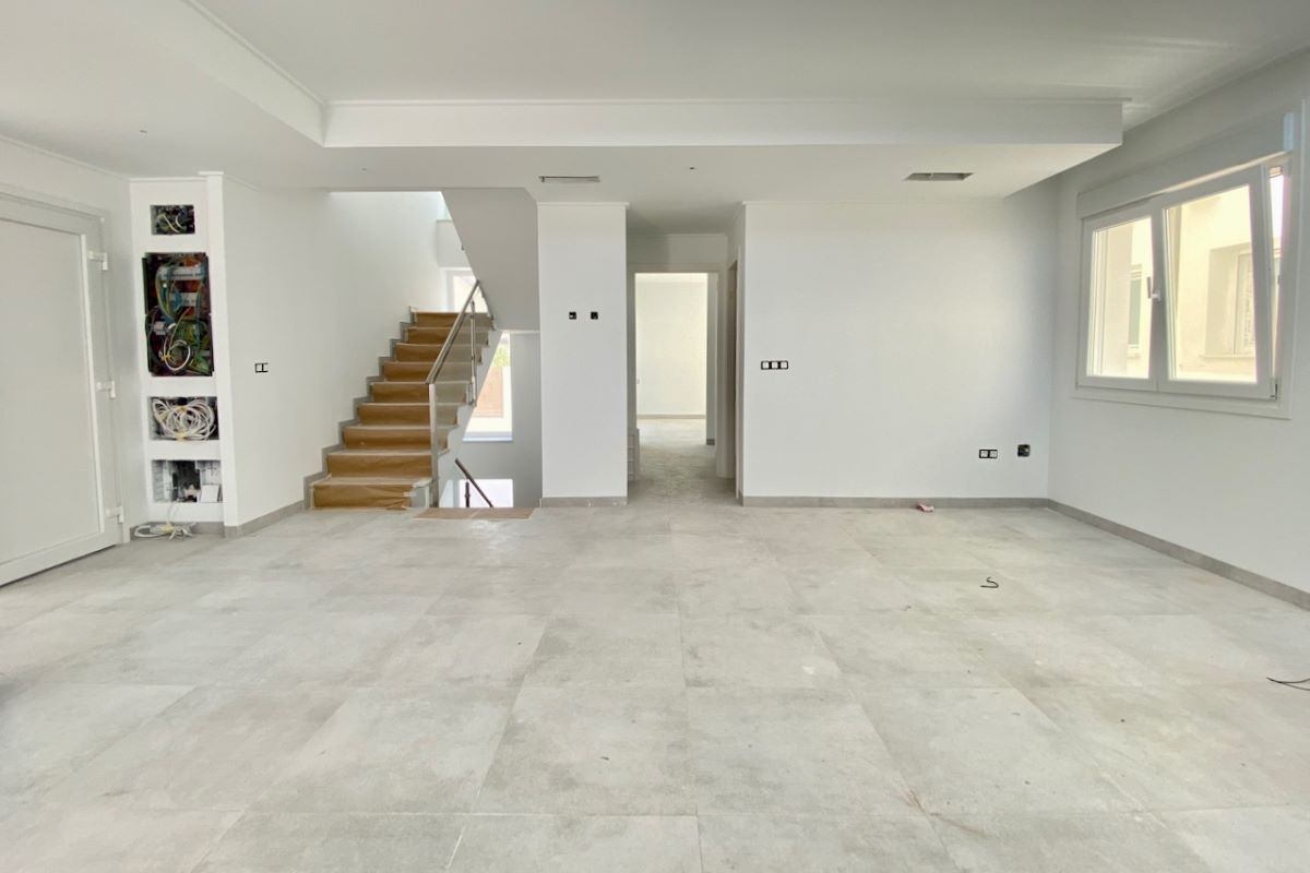 V přízemí se nachází velký světlý obývací pokoj a otevřená kuchyň s přímým vstupem do krásné zahrady. Toaleta pro hosty a velká ložnice s vlastní koupelnou. V prvním patře jsou dvě velké ložnice, obě s vlastní koupelnou. Dále se v tomto patře nachází televizní místnost a dva balkony.